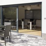 Cez hliníkové zdvižno-posuvné dvere prechádzame bezbariérovo na juhozápadnú terasu. Tá je pred slnkom ale tiež pred dažďom chránená modernou pergolou Espacio s hliníkovými lamelami s rozsahom naklopenia 0° až 140°. Majitelia rozšírili pergolu o zvislé bočné steny a tak terasu môžu využiť celoročne a za každého počasia.