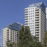 Okná od Slovaktualu na tejto stavbe: Hliníkové okenné konštrukcie Slovaktual W72 v modrosivej farbe RAL 7031 v celkovom počte 556 ks (veža C) + 687 ks (veža B).