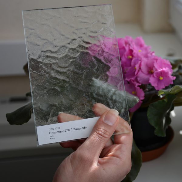 Vzorované sklo je priesvitné, takže prepustí dostatočné množstvo svetla. Ako vidíte na obrázku, nie je však úplne priehľadné, takže poskytuje dostatok súkromia. Osoby a predmety za ním sú rozostrené. Pri pohľade cez vzorované sklo môžete rozoznať obrysy postáv a pohyb, ale nie detaily.